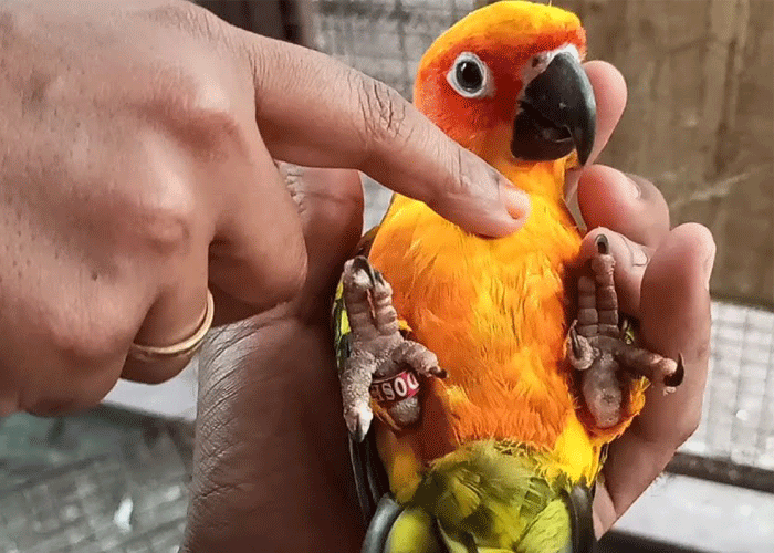 superzahmer Sonensittich, auf Frauen fixiert aber auch beo allen sehr zahm; Handaufzucht 2024; spricht etwas in gute Hände abzugeben